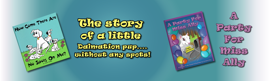 Phyllis Hazelet resides in Vermont with her husband Tom and her two Dalmatians and a cat. She has two writing certificates from The Institute of Children's Literature, and has written several stories in which four were published in children's magazines. She enjoys writing, winter sports, & traveling. You can contact Phyllis here!